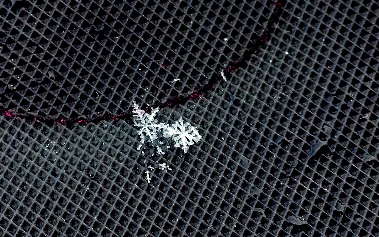 (images I made of snowflakes on my pink and black mitten)