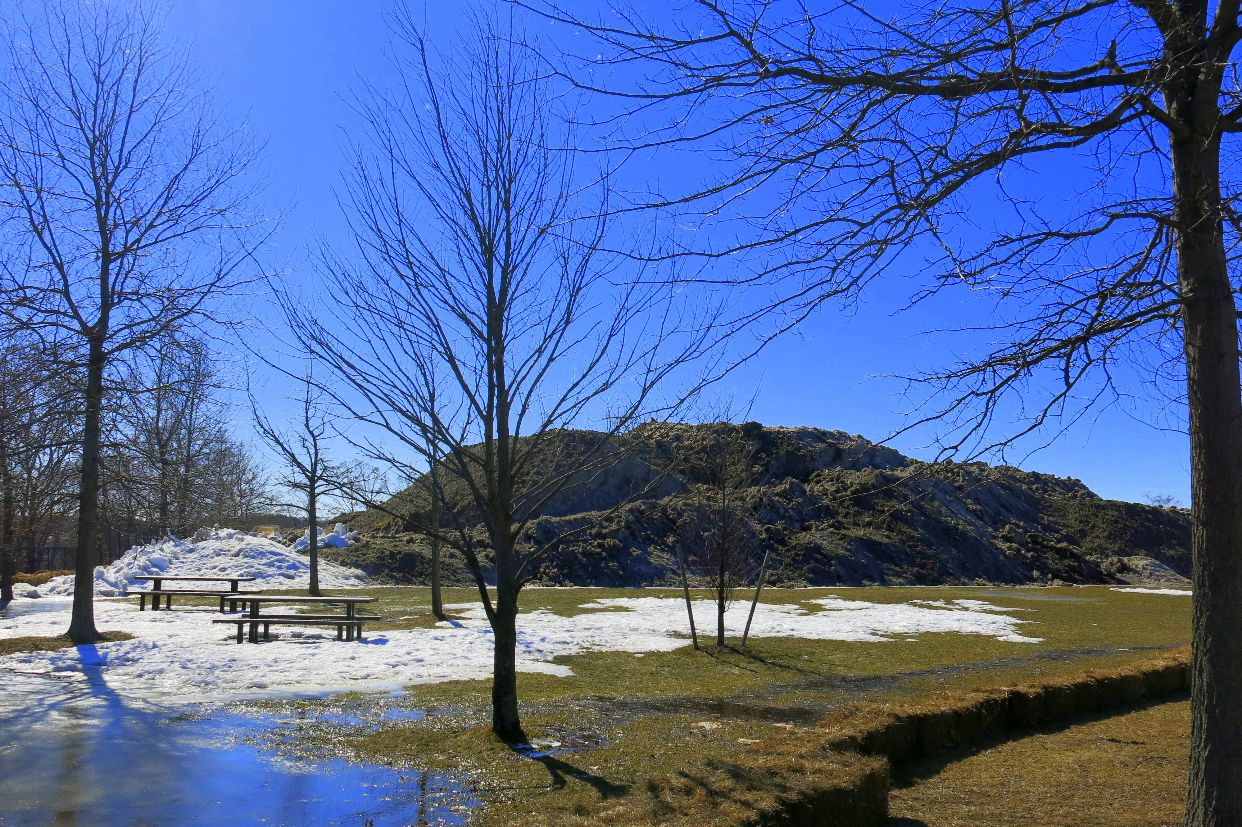 Back to the snow. Round here we have snow farms. That’s what they call them. Those are the empty lots or playing fields upon which the plowed and trucked snow is dumped. Some of these snow farms resemble mountains. There is a picture of one at the top of this page, from my local park. There’s a playing field under it. Maybe you can tell that by the little set of bleachers dwarfed by the snow mountain.