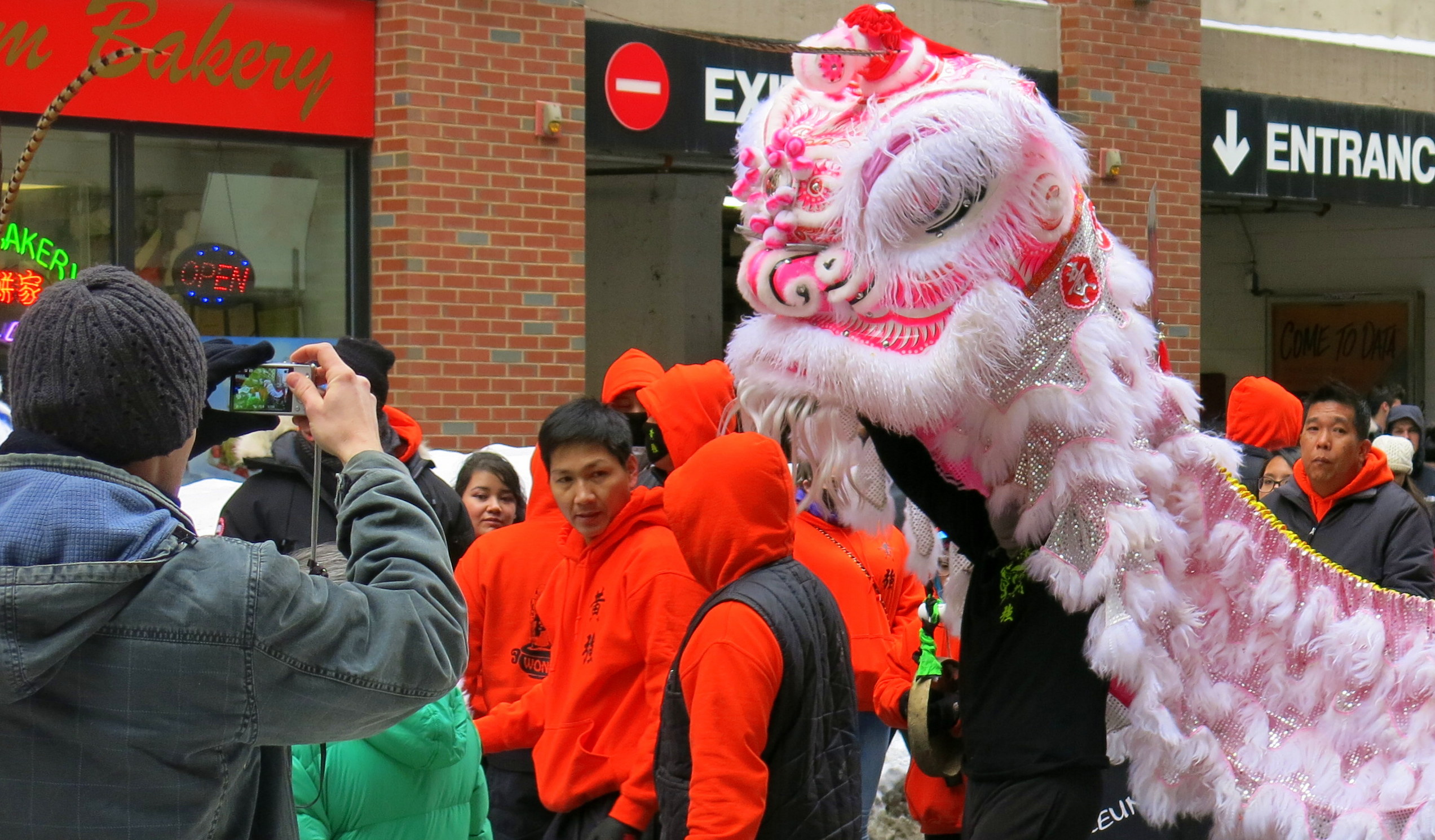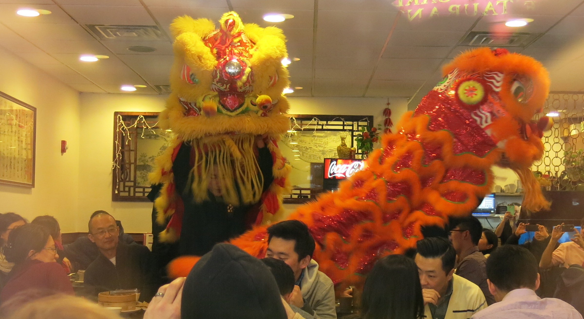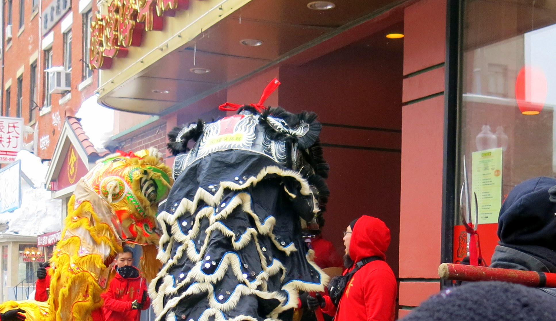 This lion had gathered quite a crowd by the time he got to a restaurant at the end of the street, where not only did he “eat” the offering of auspicious food (and the red envelop), but following his dance and meal, he went right into the restaurant where he expertly terrified and awed its patrons and gratified the kitchen crew.